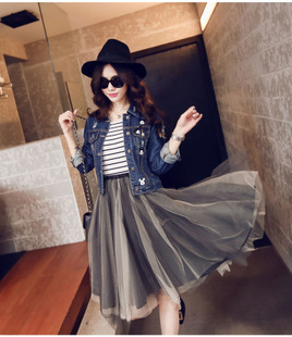 2015女裝新款韓版春夏氣質(zhì)甜美潮飄逸網(wǎng)紗拼接百褶過膝蓬蓬半身裙 /