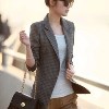 2013秋裝新款韓版修身格子西裝外套顯瘦一粒扣格子小西裝女小西服 /