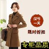 2013秋冬裝新款翻領修身雙排扣毛呢外套女中長款呢大衣呢子大衣 /