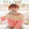 2013秋新款韓版打底套頭針織衫桃心圖案拼接寬松毛衣外套女 /