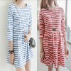 韓版英倫森林系學(xué)院風(fēng)時尚百搭顯瘦條紋七分袖連衣裙 /