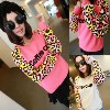 彩色豹紋插肩袖寬松圓領(lǐng)加厚抓絨寬松字母衛(wèi)衣(加厚加絨) /