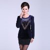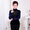 中老年女裝 長袖打底衫 韓版蕾絲領(lǐng)裝鉆飾金絲絨保暖衣T恤保暖衣 /