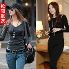 【快消匯】 純棉紐扣長袖T恤 修身圓領(lǐng)長袖 女裝 長袖打底衫批發(fā) /