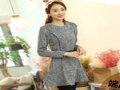 2015春季歐洲站時尚圓領(lǐng)打底毛呢長袖連衣裙 高腰修身荷葉邊女裙 /