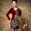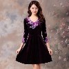 2013秋冬裝新款 高檔絲絨繡花 刺繡連衣裙大碼女裝連衣裙批發(fā) /