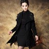 2013秋冬新款 手工釘珠黑色蕾絲外套 翻領(lǐng)女式羊毛絨大衣毛呢外套 /