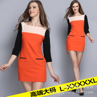 歐美大牌加大碼女裝胖mm2014秋裝新款包臀中長(zhǎng)連衣裙一件代發(fā) /