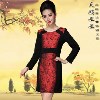 天鵝姐姐2012秋裝新款 時尚印花 閃耀裝飾 圓領長袖連衣裙 /