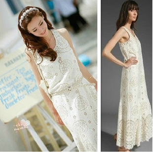 2015 嗆口小辣椒 睫毛刺繡無袖長裙鏤空蕾絲連衣裙(送腰帶) /