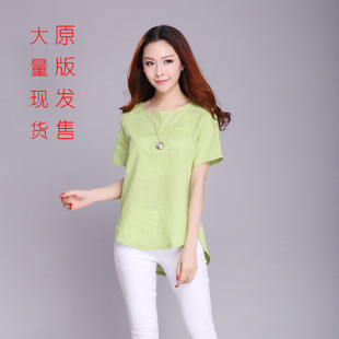 外貿(mào)棉麻女裝亞麻女裝上衣麻料襯衣棉麻短袖女夏 /