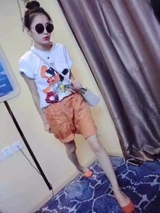 歐洲站2015夏季新款套裝女 唐老鴨印花百搭T恤 潮 /