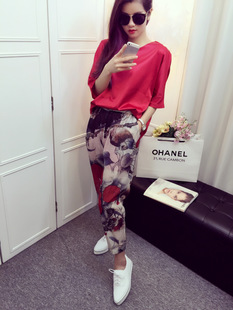 2015夏季新款套裝女 寬松蝙蝠袖真絲上衣兩件套 /