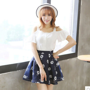 • 2015新款韓版女式短袖雪紡衫露肩半身裙兩件套連衣裙套裝女夏 /