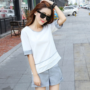 • 2015新款歐洲站時尚夏季短袖棉麻時尚休閑兩件套氣質(zhì)亞麻短褲套裝 /