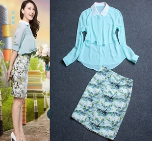 2015春裝咱們結(jié)婚吧高圓圓明星同款 女裝雪紡襯衫包臀半裙套裝 /