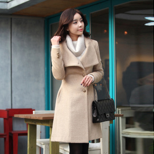 • 韓國東大門代購新款修身長袖毛呢子厚大衣外套毛呢外套大碼女裝 /