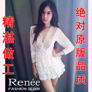 星星連體褲連衣裙泰國潮牌代購褲裙層層荷葉長袖唯美V領(lǐng)蕾絲 /