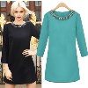 2013新款女裝歐美大牌高端氣質(zhì)長袖圓領(lǐng)純色打底連衣裙9939 /