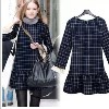 歐美女裝大牌2013秋冬修身顯瘦百搭格子裙子百搭長袖連衣裙批發(fā) /