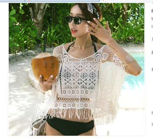 韓版沙灘比基尼鏤空外套沙灘休閑外搭罩衫鉤花網衫 /