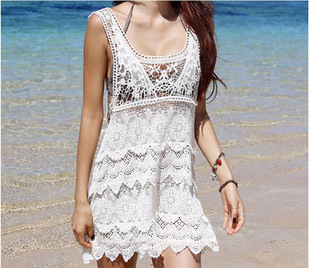 韓版新款網紗鏤空沙灘衣 防曬衣 女泳衣針織罩衫 比基尼外套 /