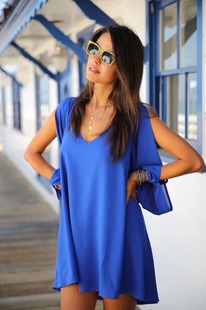 速賣通ebay貨源秋季新款迷你v領(lǐng)雪紡寬松A字連衣裙時尚女裝 /