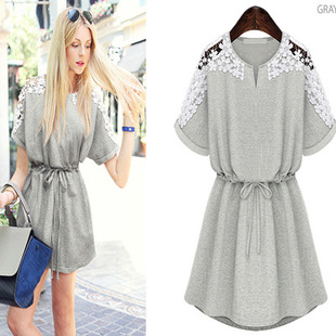 2015夏季 新款歐洲站歐美高端大氣蕾絲短袖寬松連衣裙女裝 批發(fā) /