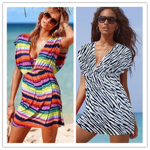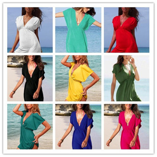 批發(fā)歐美爆款沙灘裙 深V海灘連衣裙 沙灘比基尼外罩衫裙 /