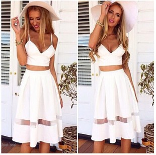 速賣通夏季女裝2015花邊無(wú)袖上新時(shí)尚i歐美性感的白色吊帶連衣裙 /