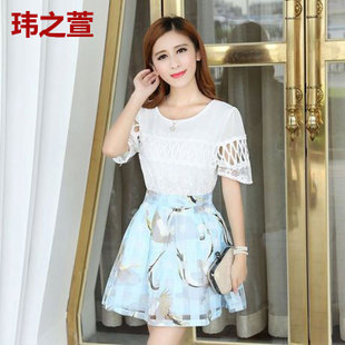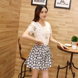 夏天兩件套女連衣裙 韓國氣質(zhì)時(shí)尚雪紡裙子套裝 /