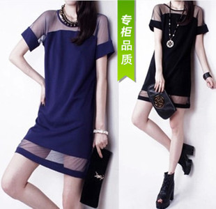 2015夏天新款女裝夏季網(wǎng)紗拼接雪紡包臀連衣裙A字裙現(xiàn)貨跑量批發(fā) /