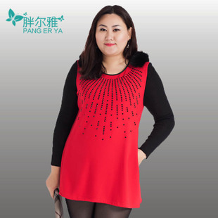 初春新款胖mm大碼女裝長袖鑲鉆長款加絨加厚熱銷打底衫品牌代理 /