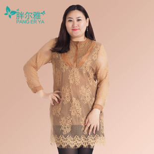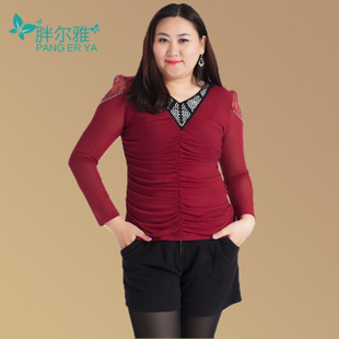 2015春裝新款大碼女裝 胖mm韓版加肥加大潮修身蕾絲鑲鉆打底衫 女 /