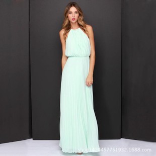 2015新款歐美名媛淑女風(fēng)掛脖背心連衣裙 雪紡?fù)系亻L(zhǎng)裙(優(yōu)質(zhì)) /