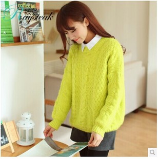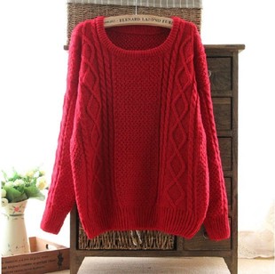 2014新款女裝韓版女士針織衫寬松麻花復(fù)古套頭加厚女士毛衣外套 /
