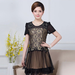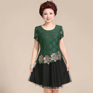 時(shí)尚中老年女裝蕾絲連衣裙新款夏裝短袖中長(zhǎng)款連衣裙大碼媽媽裝 /