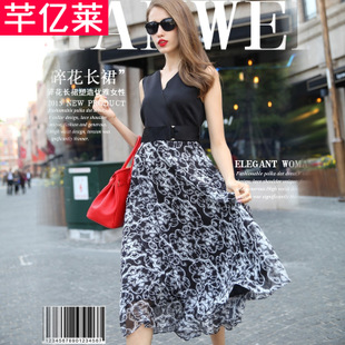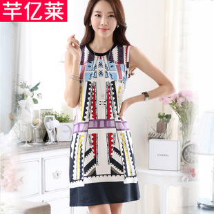 2015夏季連衣裙印花無袖潮裙優(yōu)雅復(fù)古修身背心短裙女裝裙子 /