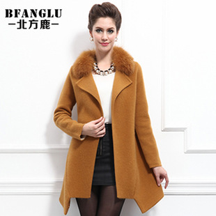 北方鹿冬季品牌大衣女歐美純色中長款大毛領(lǐng)貂絨大衣外套女批發(fā) /