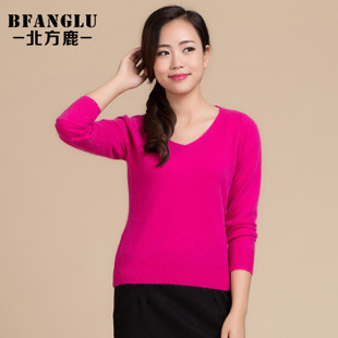【火拼】北方鹿春季品牌女裝 純色V領(lǐng)套頭長袖貂絨針織衫打底衫 /