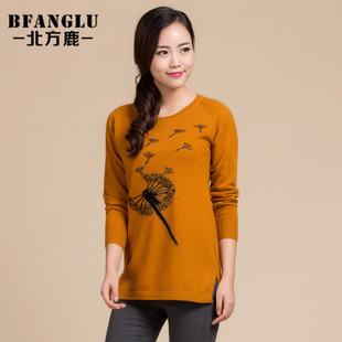 春季新款北方鹿氣質(zhì)女裝 蒲公英圖案鑲圓領(lǐng)貂絨衫 批發(fā)廠家直銷 /