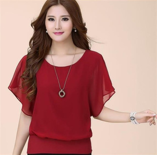 2015#夏季新款韓版女短袖 大碼女裝修身顯瘦蝙蝠袖雪紡衫寬松T恤 /