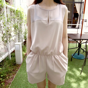 2015#夏季新款韓版修身雪紡連體衣短褲女大碼寬松無袖背心連衣褲 /
