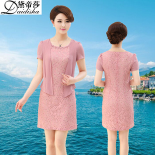 中老年夏季媽媽裝禮服假兩件雪紡蕾絲連衣裙新款大碼一件代發(fā)女裝 /