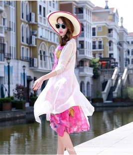 歐美大牌桑蠶絲開衫女式夏季長款超薄透氣真絲防曬衣胖mm披肩外套 /