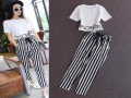 明星同款2015夏季女裝小香風短袖條紋哈倫休閑套裝一件代發(fā) /