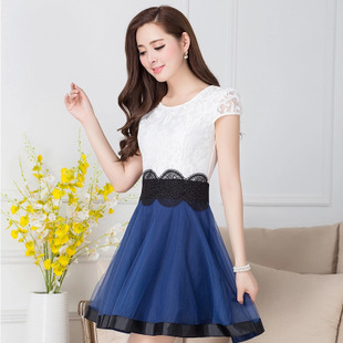 2015夏季新款歐根紗修身顯瘦拼接優(yōu)雅氣質(zhì)短袖圓領網(wǎng)紗連衣裙子女 /