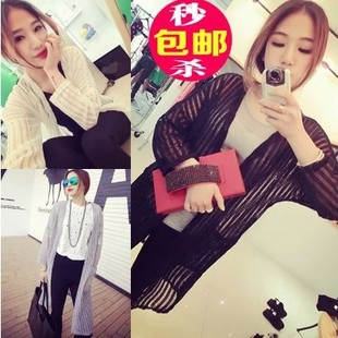 2015中長款針織衫外搭女小開衫夏防曬衫超薄鏤空春秋外套空調(diào)衫潮 /