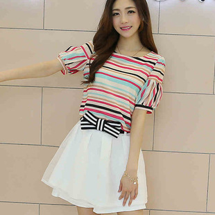 2014夏裝新款女裝韓版小清新短袖雪紡連衣裙女夏兩件套裝裙932 /