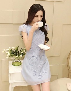 2014連衣裙女夏季新款雪紡連衣裙 韓版修身繡花顯瘦女裙 /